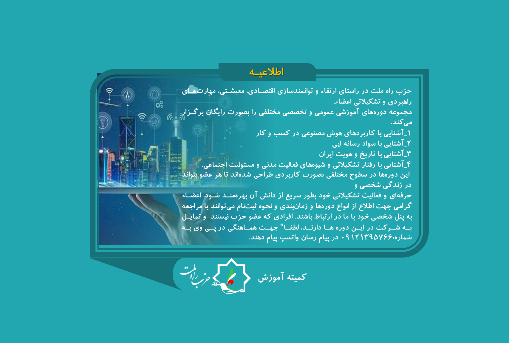 از اینکه اعضای محترم آن حزب را که در انتخابات ۱۴۰۰ همسو با آرمانها ، اهداف و برنامه ها در همراهی اینجانب از هیچ کوششی فروگذار نکردند ، همچنان سرشار از نشاط و تحرک ناشی از احساس مسئولیت اجتماعی و مدنی بیبدیل می بینم ، بسیار خرسندم و خرسندی مضاعف اینکه با شناختی دقیق از موقعیت اجتماعی ، سیاسی ، فرهنگی و اقتصادی کنونی کشور و درکی صحیح از نا آرامی ها و اعتراضات بیش از پیش بر همراهی با مردم در پیگیری مطالبات و استیفای حقوق حقه ملت و بیان حقایق فارغ از جناح بندی ها و منفعت طلبی ها ، در راستای منافع ملی، حفظ تمامیت ارضی کشور، آزادی بیان، اعتلای کشور، امنیت و رفاه و توسعه برای ایران و ایرانیان تاکید دارید .