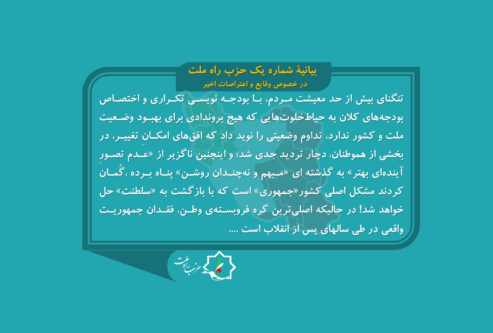 - بیانیه شماره یک حزب راه ملت در خصوص وقایع و اعتراضات اخیر. تشریح وضع موجود