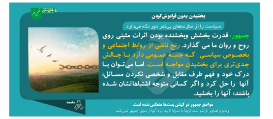 • بخشیدن، آن رفتار سترگ انسانی است که در بطن اختلافات سیاسی، آتشی را که شعلهور گشته فرومینشاند و آغازی دوباره بر پیوندهای گسسته میگذارد.