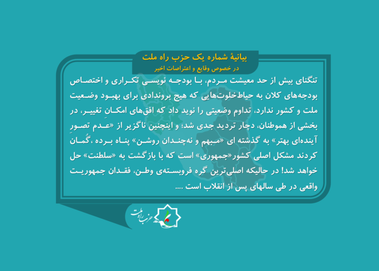 بیانیه شماره یک حزب راه ملت در خصوص وقایع و اعتراضات اخیر. تشریح وضع موجود